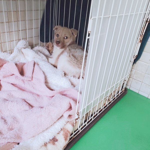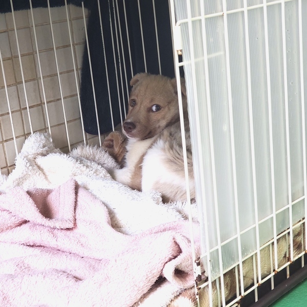 | 特徴(性格など) | ♡まだ生後2ヶ月位、野良ちゃんが生んだ雑種の子犬、とても臆病な可愛い男の子がひとりぼっちで待っていますฅ•ﻌ•ฅ 人と接した経験が無く、撫でられたり触れ合ったり人からの当たり前の愛情、優しさを知らないまま、お腹を空かせて寒いお外で必死に生きてきました。 突然親兄弟と離れ離れになり連れて来られて収容されぽつんとひとりぼっち、どんなに寂しく心細いか。 一日も早く温かい家庭の中で過ごさせてあげたいです。 無理もありませんが知らない場所、初めての環境でまだかなり怯えて怖がっています。 優しい職員さん方が大丈夫だよ、幸せになれます様にと毎日触れ合い、声掛けしながら一生懸命にお世話してくださっています(^^) 撫で撫でしてもひたすらジーっと大人しく固まって怯えていて、ただただ怖くてたまらない様子、必死に気配を消している感じでうずくまっています。 抱っこすると自分を守る為に恐怖心から噛んできてしまいます(>_<) 段々と人の目を見てくれるようにはなってきましたが人との関わりや新しい環境に馴れるまではまだ暫く時間を要するかと思われますm(_ _)m ご飯も人前では食べず、人が居なくなってから食べている状況です。 栄養不良に不衛生な環境からの保護・収容で、痩せていましたしノミダニがついていました(><) 痒がってはいませんが尻尾に脱毛箇所があり(少しずつ生えてきています)毛艶も悪く、栄養状態や健康状態がいいとは言えません。 体調も急変しやすいかと思われます(>_<) 何か病気や障害が有るのか、無いのかも分かりません。。 ★今後、体調の急変などもあり得ることを念頭に置き、譲渡後は早急な病院受診が可能なご家庭を希望しておりますm(_ _)m 現在は1日に3回、ご寄付で送って頂いた栄養価の高い良質な仔犬用のドライフード(ネイティブドッグフードパピー)をミルクでふやかして食べています。 まだまだ幼い為、長時間のお留守番は出来ません。 特に子犬は寂しくて夜鳴きする子も多いです。 ※今後の健康な成長の為に良質なフードを与える事が可能な方。 ※大事な社会化期で、これから甘噛み期やトイレの躾など、何かと手がかかりますが育てる自信と覚悟のある方。 出来ればこのような野犬の飼育経験のある方が望ましいですm(_ _)m ※子犬は思っていた以上にお世話が大変だと言われる方が多く、排泄も頻回で甘噛み期もあります。カミカミされると痛いです! この子は甘噛み以前に、怖さで噛んでくるので本当にご苦労もかなり多いと思います( ; ; ) 日に日に大きくなっていきますし、換毛期は抜け毛もわんさか、日々のブラッシングも必要です。 本当に!大変ですが( ; ; )充分ご理解頂ける方m(_ _)m ♡まだお散歩デビューは出来ませんが、怯えている事もありますし、今後成長していく中で、急な物音や知らない場所にビックリして怖がって、咄嗟に逃げよう、逃げようとする可能性も大いにあり得ます! その時の力、引きの強さも想定し、急な走り出しや高い塀や壁・柵の飛び越え・急な方向転換や首を振って後退りからの首輪抜け、胴輪抜けにはご用心です! 呼び戻しも教えなければなりませんし、パニックになったワンちゃんには呼び戻しもききません、もし逃がしてしまったらピューっと走って逃げて行ってしまう可能性大です!(>_<) もし逃がしたらもう捕まえられない!!というようにお考えくださいm(_ _)m ※繰り返しになりますがどんな子であっても、慣れてきても、常に、脱走・逃走には充分な注意と最大限の配慮と(二重扉、W首輪、胴輪にWリード)迷子札の装着 をお願いしております。 適切に制御し、躾や毎日朝晩のお散歩、運動の時間をしっかり取ることの出来る、沢山優しく触れ合って頂ける方。 先ずはこの子が心を開いていけるようじっくりと時間を費やし触れ合い、信頼関係を作っていく事の出来るご家庭を希望しております。 ♡人間が焦らずにゆっくり見守りながら、愛情を持って接ししっかりとお散歩にも連れ出して行けば、この子はきっと徐々に新しい家庭に馴染んでいける、優しい家族に囲まれて思い切り甘えて遊んでほしいのだと思います。 当分の間はかなり手がかかり大変かと思いますがまだ子犬ですし、広い心で、例え長期戦でもドンとこい^_^と仰って頂ける方。 ビビリまくりで殻に閉じ愛くるしいこの子をいつか尻尾フリフリ♫ニコニコの笑顔にしてくださる方、いらっしゃいませんか? どうぞ宜しくお願い申し上げますm(_ _)m ⭐️必ず室内飼育で、譲渡後速やかに病院受診、健康診断、2回目3回目の混合ワクチン、生後4〜6ヶ月頃を目処に避妊、去勢手術をする事が可能なご家庭。 ⭐️まだまだ幼い為長時間のお留守番は出来ません。なるべくお留守番の少ない(4時間以内)沢山優しくスキンシップやコミュニケーションで触れ合っていただけるご家庭。 ストレスが溜まらぬよう、成長後の運動量もしっかり確保出来るご家庭m(_ _)m ⭐️トイレの躾は1からとなります。 まだ子犬なので躾は入