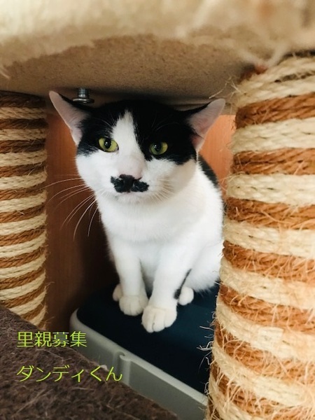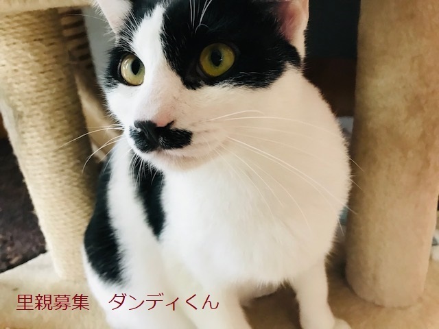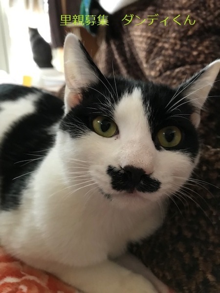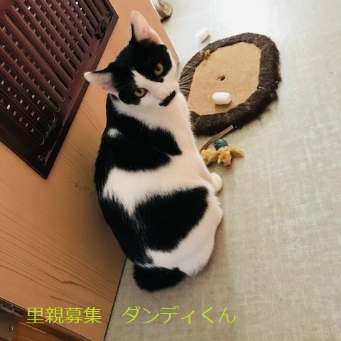 | 特徴(性格など) | 白黒猫、男の子、仮名:ダンディくん 推定生後9か月くらい、体重:4.5Kg(3/12現在) 健康診断済み、駆虫済み、ブロードライン済み(10/29) 血液検査-エイズ・白血病-ともに陰性(2022年10/29) 三種混合ワクチン接種済み(2022年12/11) 去勢手術済み(2022年10/29) トイレしつけ済み 去年の8月、生後3〜4ヶ月で保護しましたが、用心深いお母さんの教えを守って、なかなか人馴れしてくれません。最近、やっと少し触らせてくれるようになりました。(母猫はTNRしました) 顔つきは大人びていますが、性格は穏やかで他の猫とケンカせず、仲良く過ごしています。 出来れば、同じ年頃の猫のいる家庭で飼ってもらえたらと思います。 |