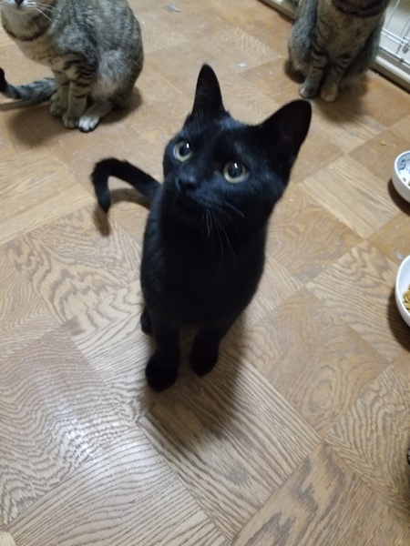 | 特徴(性格など) | 黒猫の子猫です。 やんちゃで食いしん坊、 最初はビビりちゃんだけど 慣れるとゴロゴロいって 近くに来ます! |