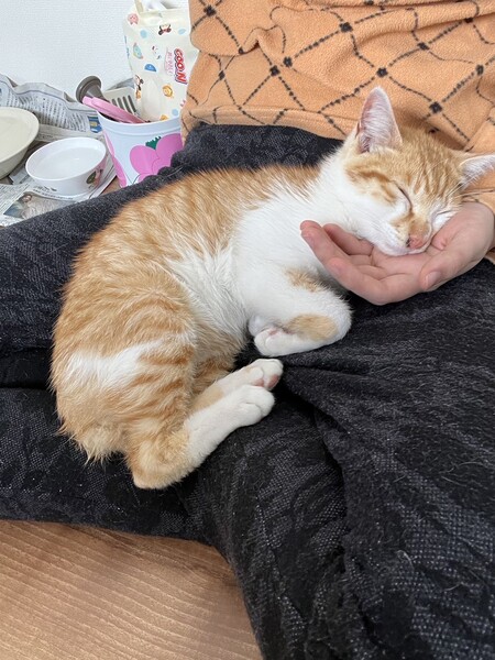 | 特徴(性格など) | とっても人懐っこいかわいい茶白男の子です。 遊ぶのが大好き! 人だけでなく猫ちゃんともうまく付き合える性格の良さが長所!先住猫ちゃんのいるおうちも大丈夫です。 尻尾は短いです。 |