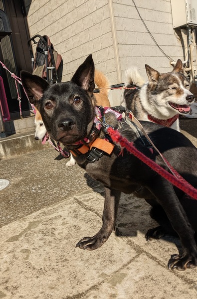 | 特徴(性格など) | 毛色は、全身黒に少しですがトラ柄まじりです。甲斐犬ミックスみたいです。 生後4ヶ月位の時に保護してます。 全く人馴れしていませんでしたが 慣れからは、抱っこもできるようになりました。 怖がりですが好奇心もでてきて ボールや、ぬいぐるみ、オモチャでよく遊びます。 すくすくと成長しています。 クレートで大人しくできます。 車酔いしません。 かなり頭が良い子です。お座り、お手、おかわりをすぐに覚えました。 トイレは、シートに躾できています。 怖がりなが子に慣れた方で 寄り添って下さる里親さんを 募集しています。 先住のワンニャンに対しても 上手く接しています。 どの子に対しても穏やかです。 とくに、猫たちと仲良く遊んでいます。 仔犬らしいかわいい盛りです。 少し臆病ですが慣れるのは早い方だと 思います。なれてからは、 すりすり甘えてくれます。 散歩は、トレーニング中です。 暴れることもなく大人しく固まるタイプです。 首輪、リード、ハーネスのつけ外しは じっとしてくれて付けるのが楽です。 |