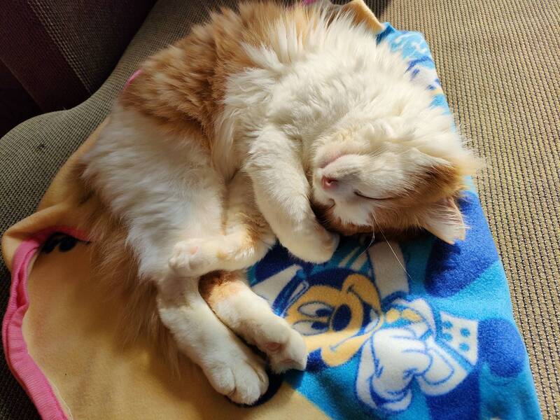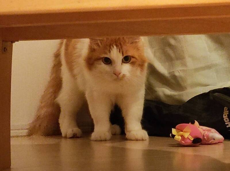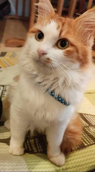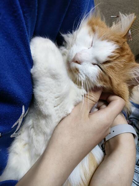 | 特徴(性格など) | <特徴> ◎ふわふわでとってもかわいいです 長毛でふわっふわの甘えん坊さんです。大型種のようなかわいい見た目ですが、体重は4kg強とそれほど大きくはありません。保護団体の方で去勢手術をして頂いたため、右耳がさくら耳カットです。 ◎人が大好きです 人の近くにいるのが落ち着くようで、人が座っていれば膝に、寝ていればお腹に乗ってきて、念入りな毛づくろいを始めます(そのせいで私たちが動けなくなってしまうこともしばしばです笑)。かまってほしいときは足元にきて寝転び、コロコロしてきます。 ◎元気に遊びます じゃらし遊び大好きで、すごい勢いで追いかけます。動いていないおもちゃを自分でつついてドリブル遊びをすることもしょっちゅうです。寝ていることが多いですが、遊びモードのときはやんちゃで、おなかを撫でようとすると甘噛みしてきてしまったり、猛スピードでこたつに突っ込んでいってしまったりすることもあります。 ◎落ち着いていて飼いやすいです 基本的にはマイペースなおとなしいこで、どっしりとかまえています。いつでも触らせてくれますし、抱っこもさせてくれます。かまってもらえない時はずっと寝ているし、神経が図太く、掃除機やドライヤーの音も気にならないようで、とても飼いやすい猫さんだと感じます。トイレもおぼえており、粗相もありません。 ◎よく猫語をしゃべります 鳴き声は小さめですが、何かに興味を持った時などに、「にゃぁー?」とよく猫語をしゃべります。小さく鳴きながら近づいてきて甘えてくるたまらなくかわいい猫さんです。 <健康状態> 猫免疫不全ウイルス:+ 猫白血病ウイルス:- ノミダニ寄生虫駆除:済 去勢手術:済 3種混合ワクチン:済 猫免疫不全ウイルス※をもっていますが、ごはんの気配を察知するとすぐ駆けつけるほど食欲旺盛で、排泄も順調であり、問題なく元気に過ごしています。 口内炎があり、現在経過観察中です。二月末の診察では、現段階では治療の緊急性はないが、悪化したら炎症を抑える投薬治療や、場合によっては抜歯が必要になるかもしれないと言われました(猫免疫不全ウイルスをもっている猫は口内炎になりやすいのだそうです)。診察から一ヶ月経った今でもドライフードにがっついて食べていて、まだ痛みは感じていないようです。里親様には、この猫さんがひどい口内炎になる前に治療を受けられるよう、注意して見ていて頂ければと思います。 ※猫免疫不全ウイルス感染症(通称「猫エイズ」)について ・発症すると免疫がはたらかなくなってしまう病気です。発症したら最終的には死亡してしまうことが多いですが、非常にゆっくりと進行するのが特徴で、無症状の期間も長く、発症しないまま天寿を全うする猫も多いようです。 ・衛生面に気を付けること、健康観察に留意することを除けば、健康な猫と変わらない生活を送れるとされています。確立された治療法はありませんが、対症療法で病状をコントロールすることで、発症後も元気に過ごせる時間を延ばすことは可能です。 ・ネコ科動物だけに感染するウイルスですので、人や犬などにはうつりません。猫への感染力も低く、交尾や、喧嘩での血が出るような噛みつきが主な感染経路で、空気感染などはしないとされています。 とても元気なかわいい猫さんですので、ご理解いただける方、ぜひご検討をよろしくお願いします。 ご不明な点があればお気軽にご連絡ください。 |
