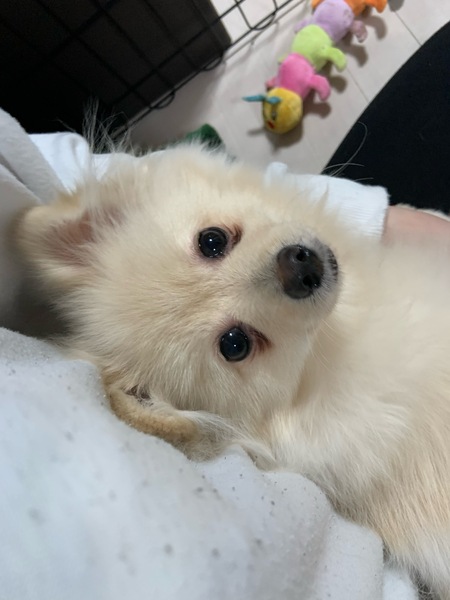 | 特徴(性格など) | クリーム色のポメラニアンです。 温厚ですが元気で優しい性格の男の子です! |