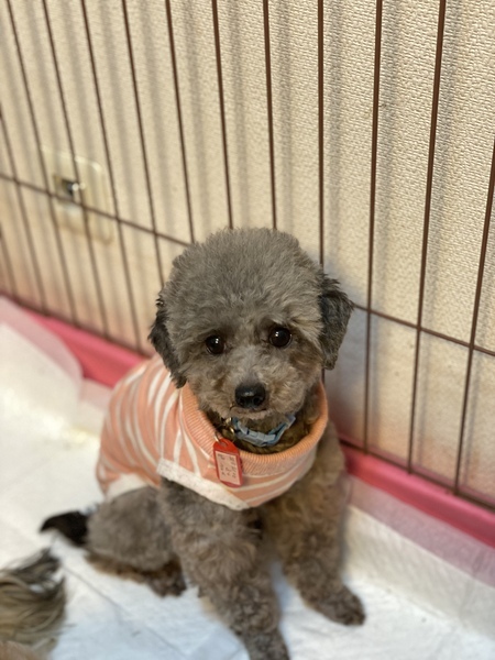 | 特徴(性格など) | 犬種:トイプードル 毛色:シルバー 年齢:2017年3月5日生まれ 体重:2.1キロ 性格:慎重派ですが甘えん坊で犬にフレンドリーです トイレ:トレーニング中です 散歩:お散歩出来ます 日常の様子:犬のベットで寛いだり甘えて来たりしています お手入れ:毎月のトリミング・毎日のブラッシング・歯磨き・耳掃除・涙やけケアなど ※トリミング犬種なので、必ず毎月1回サロンでトリミングをして可愛く清潔にして頂ける方、それだけの経済的余裕がある方を希望します フード:フィッシュ4 健康状態 フィラリア 陰性(-) ワクチン 6種混合接種済み マイクロチップ 装着済み 避妊・去勢 去勢手術済み 触診・聴診・血液検査・検便、異常なし 駆虫薬投与・ノミダニ駆除済み・スケーリング済み ★声帯切除されているので、将来 気管の病気になる可能性があります |