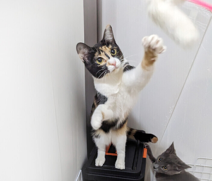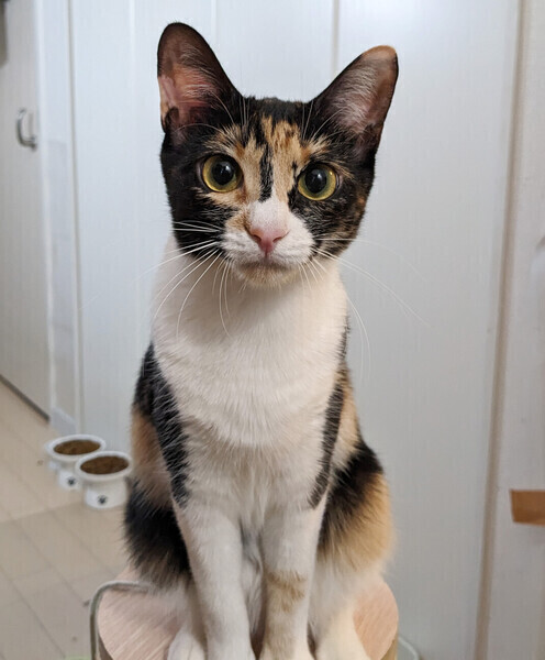 | 特徴(性格など) | 6月4日(日)12:00~16:00(最終申込15:30) ねこざんまい譲渡会【東日本橋会場】に参加予定です! 会場の案内はこちら♪ https://ameblo.jp/neko3mai/entry-12798688344.html ※猫ちゃんとのお見合いは譲渡会となります。 譲渡会ご来場につきまして、事前予約は不要です。 どうぞご家族みなさまでご来場下さい♪ ★★★ご来場前に必ずご確認下さい★★★ 《里親様へお願いはこちら》 http://www.neko3mai.com/condition/condition.html 《家族募集中猫ちゃん一覧はこちら》 http://www.neko3mai.com/entrycats/entrycats.html ◆ 名 前 ◆ まつひめちゃん ◆ 年 齢 ◆ 1歳 ◆ 性 別 ◆ 女の子 おしとやかな超癒し系。とても愛くるしい三毛さんです。写真の通り、おもちゃ大好きです。 人懐っこく、甘えん坊でいつも体にまとわりついてきます。ゴロゴロすりすりしているうちに、感極まり、床から胸めがけてジャンプ! 胸に飛びこんできたり、この上ない可愛さで保護主一家を魅了しています♡ 可愛すぎて、メロメロになる事間違いなしです。 兄妹のくうがくんともよく遊んでいます。くうがくんの方がしつこく絡みがちですが、まつひめちゃんもうまくかわせるようになりました。 兄妹ともに、甘えん坊で、抱っこ&お膝&スキンシップが大好きです。爪切りも楽々。 20年以上共に暮らすのに、最高の兄妹です。 ○兄妹くうがくん https://satoya-boshu.net/foster/detail.php?@DB_ID@=329239 もう一回念をおします。 『可愛すぎてご家族全員がメロメロになります!』 新しい環境では、安心安全のお部屋としてケージをご用意ください。 <保護主からの大切なお願い> 譲渡会をお見合いの場と考えております。 ご家族お揃いで会いにいらしてください。 この子にご縁を感じ、大切にする、幸せにしたい、 と心から思ってくださる方のご来場をお待ちしております。 <希望条件> ペットではなく共に暮らす家族の一員としてお迎えいただくこと。 脱走や危険防止対策を施した、整理整頓された清潔な環境であること。 毎日たくさん遊び、猫とのコミュニケーションを大事にしてくださること。 人が過ごすお部屋に出入りの制限がないこと。 <補足> 間取り図や玄関やベランダなどの出入りがわかる写真または動画をお持ちいただくと、安全対策のアドバイスがしやすいです。 先住犬猫(特にシニア)、小さなお子様、ご高齢者がいらっしゃるご家庭、単身者の方はお申し込みをお受けしておりません。 フード、キャリーなど、一部の準備品を指定させていただいております。 |