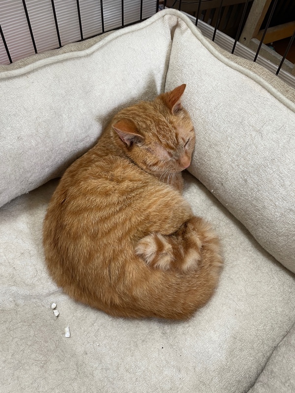 | 特徴(性格など) | 可愛いチャトラの男の子で生後6ヶ月くらいです 保護時の体重は2.5kg、毛がふわふわしています 目がクリクリしていてとても可愛い顔をしています 性格はまだ多少おびえたところもありますが、撫でてあげると気持ちよさそうにしています 攻撃性はまったくないので完全に慣れてくれると甘えん坊さんになると思います 夜は静かに寝てくれて、無駄鳴きのない良い子です フードはドライ、ウェット何でも食べてくれてトイレも問題ありません |