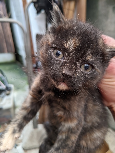 | 里親募集する理由 | 野良猫が家の倉庫で子猫を産んだのですが、借家なので飼う事が出来ないので、里親募集しました | ||