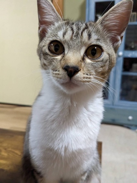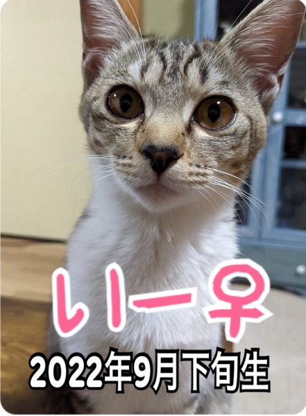 | 特徴(性格など) | キジ白 慎重な性格ですが甘えっ子です。 ちー♂、ごー♂と兄妹です。 エイズ・白血病、共に陰性 |