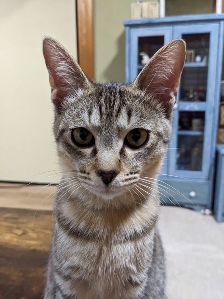 | 特徴(性格など) | キジトラ 少し神経質ですが甘えっ子です。 いー♀、ちー♂と兄妹です。 エイズ・白血病、共に陰性。 |