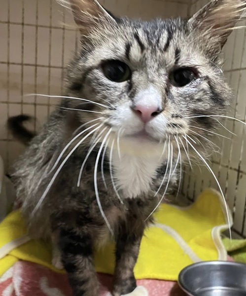 | 里親募集する理由 | 弱って行き倒れていたところを保護しました。 寒い中お外で頑張ってきました。 初期医療を済ませて人慣れしましたので里親募集します。 |