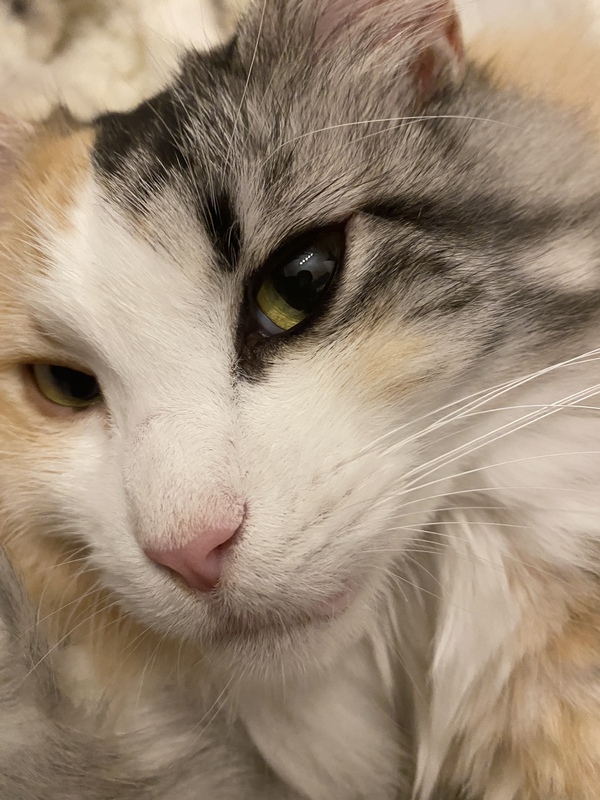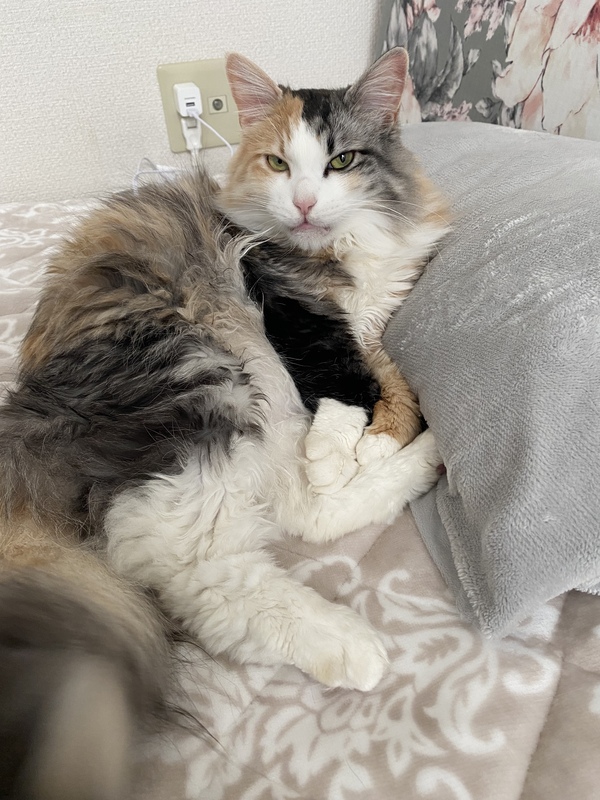 | 特徴(性格など) | 三毛、おっとり優しく甘えん坊。 | ||