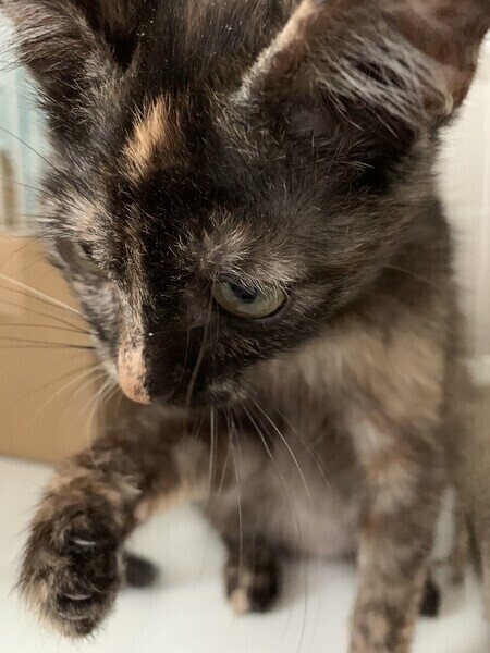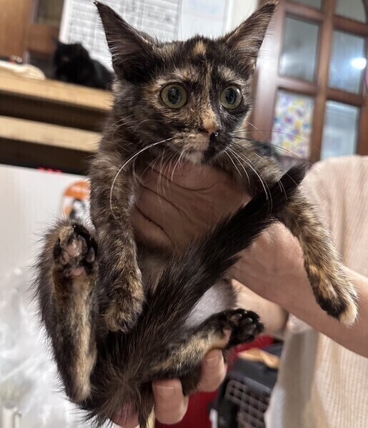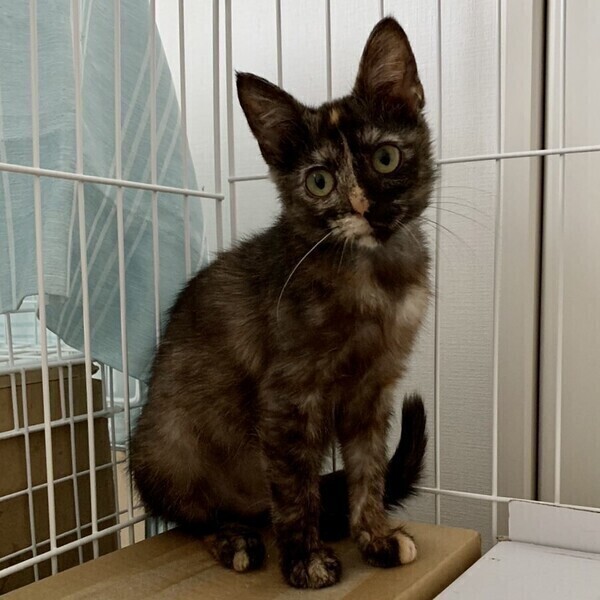 | 特徴(性格など) | ◆ チッチちゃん 控えめだけどかまってほしいサビ女子 ●月齢の小さな子猫は、以下の条件についてご了承の上で応募をご検討下さい。 ◆お留守番の少ないご家族を希望します。 ◆2匹でお迎えくださるご家族を優先いたします。 ◆小さなお子様のいるご家庭は状況によりお断りする場合がございます。 ◆高齢者のみのご家族からの子猫のお申し込みはお受けしていません。 ○生後3〜4ヶ月くらい(2023年3月下旬時点)のサビ柄の女の子です。体重は1.40kg(2023年3月22日時点)です。 ○沖縄の公園の隅で、目ヤニをつけ鼻水をたらし、ガリガリでいたところを保護されました。 ○今は元気で、ゴハンをよく食べお腹がポンポコリンです。 ○耳や毛に汚れが残ってますが、お手入れや毛の生え変わりでキレイになると思います ○お手入れはしやすいです。 ○しっぽは真っ直ぐです。 ○ひとり遊びが上手です。 ○控えめですが、構ってほしいタイプです。 ○元気にすくすく育っています。 ○同じく里親募集中で、一緒に保護された「サリー」と仲良しです。 ★ワクチン1回接種済み。 ★猫エイズ、猫白血病ともに陰性。 ★不妊手術は体調と成長を見て近日実施予定です。 ○YouTubeにも動画をあげています。こちらもご覧下さい。 「チッチ」 https://youtu.be/GsQ3ZzquMuM ○4/16(日)開催の譲渡会に参加予定!下の要項をお読みいただき、ぜひ会いに来てください♪ ☆★☆★☆★☆★☆★☆★☆★☆★☆★☆★☆★☆★☆★☆★☆★☆★☆★☆★☆ ~4月16日(日)市ヶ尾にて譲渡会開催!~ ◎場所・・「東急ドエル市ヶ尾プラーザビル2階集会場」 神奈川県横浜市青葉区市ヶ尾町1154-2 田園都市線「市ヶ尾」駅西口より徒歩約2分 ◎日程・・4月16日(日)(雨天決行) ◎時間・・13時から16時(受付は15時30分まで) (会場に利用可能な駐車場はございません。近隣のコインパーキングをご利用ください。) *12時45分より入場ご案内を致します。それより早く来て並ぶ事はご遠慮下さい。 *参加の際は、マスクの着用、アルコール消毒のご協力をお願いいたします。 *当日は検温の上、体温が37度以上の方はご参加いただけません。 *混雑状況により、入場制限をさせていただく場合がございます。 ※参加予定の犬猫は体調により参加できない場合があります。ご了承ください。 ☆★☆★☆★☆★☆★☆★☆★☆★☆★☆★☆★☆★☆★☆★☆★☆★☆★☆★☆ |