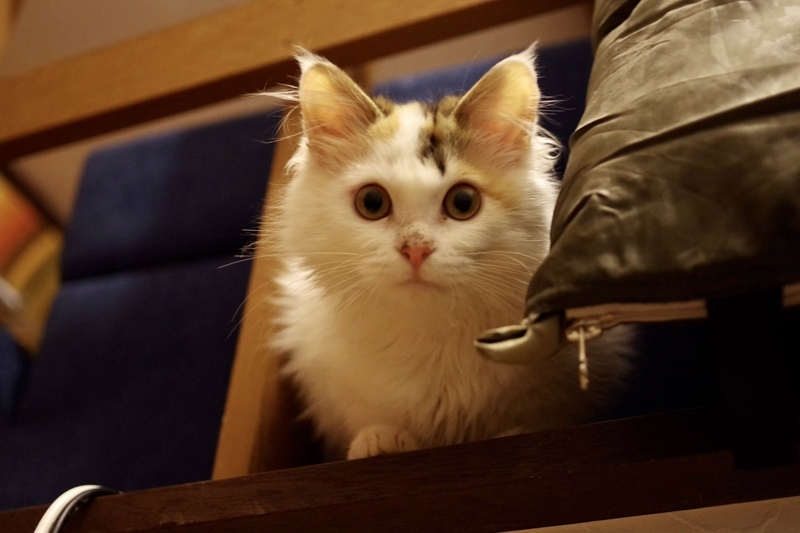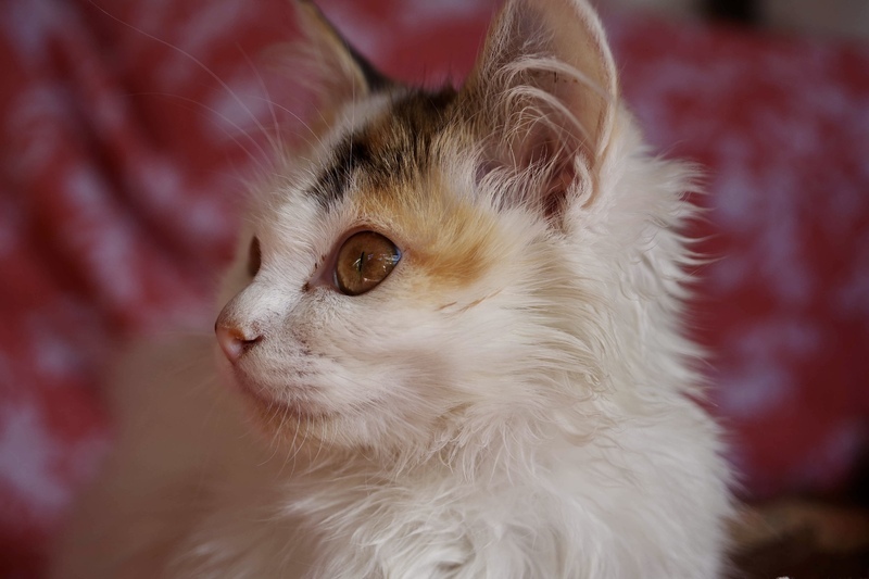 | 特徴(性格など) | 白基調の長毛の三毛、子猫らしく天真爛漫です。 | ||