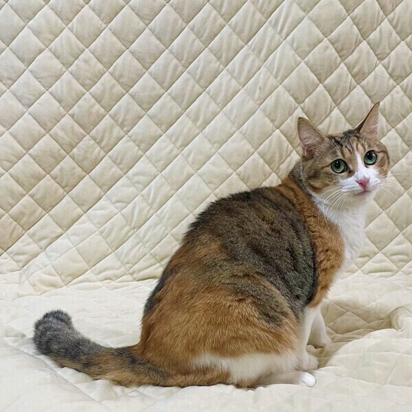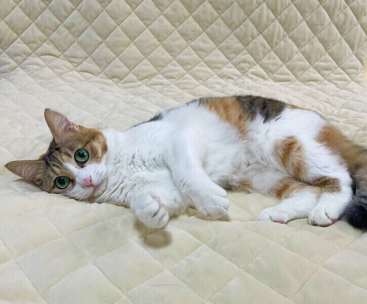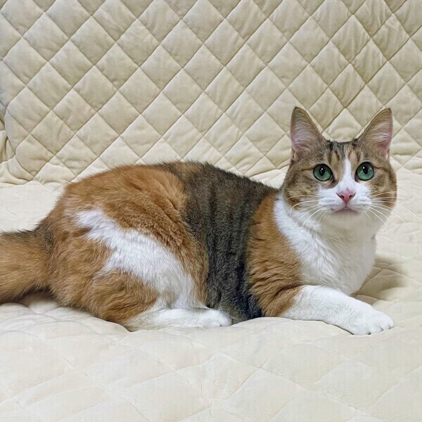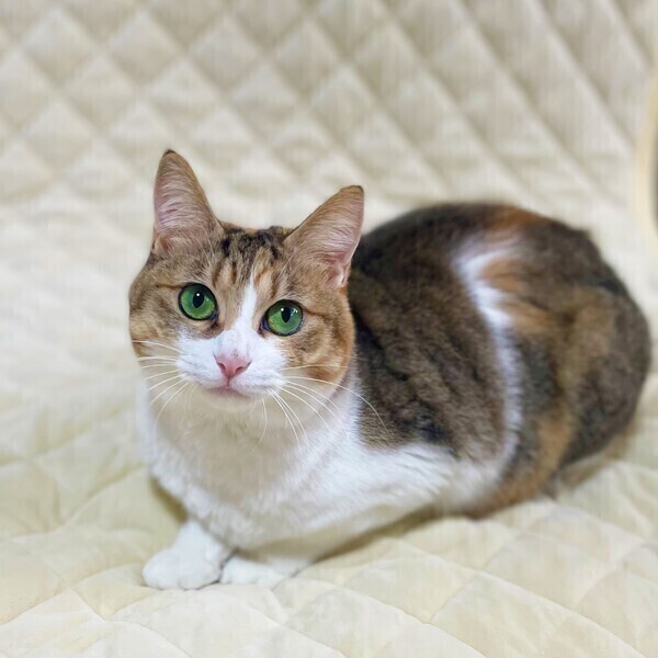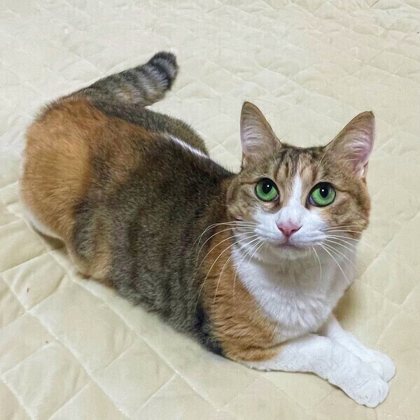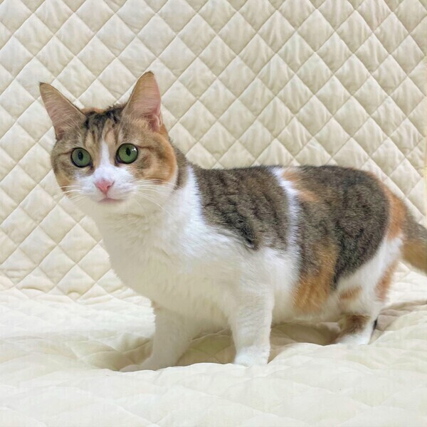 | 特徴(性格など) | 【仮名】ランドちゃん 【性格】グリーンイエローの目とちょっと短いアンヨが印象的なランドちゃん☆ シャイな性格と小悪魔的なあざとさのある甘えん坊な女の子です。 甘える時にはコロンと横たわってかわい子ぶりっこ、 撫でてあげると両前足で手を掴んできてフミフミしながペロペロと舐めてきます♪ 手を引っ込めようとすると『行かないで~!』 と言わんばかりにグイグイ引っ張ってしがみついてきます。 他の猫は苦手なようなので1匹飼育が向いてます。 ※1ピキ譲渡可 |