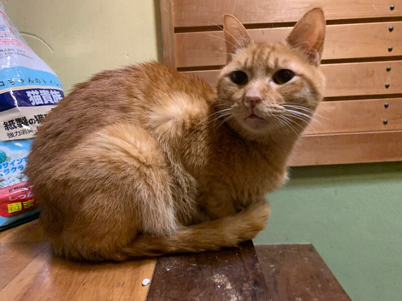 | 特徴(性格など) | 独特の困った系のお顔がチャーミングな茶トラ大きめ男子、マナT(推定5歳)! 毎日、溢れんばかりの好奇心を持ち合わせどこでもついてく、気になる所は全て覗く!覗く!! かまってちゃん男子です。 被り物は苦手だけど大好きな人間さんの為ならちょっと頑張る。 猫も人も犬も、オールOKなマナT。 ワンコスペースでも平気で寝ちゃう度胸を持ち合わせた猫はそんなに多くないはずです。 初対面の人にも慣れ慣れなので、猫初めてさんでもきっと飼いやすいと思います。 人気の茶トラで、愛嬌たっぷりのマナTを是非、家族に迎えて下さいませんか? 健康状態 ・去勢手術済み ・エイズ陽性 ・白血病陰性 ・5種ワクチン済 |