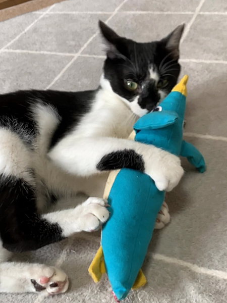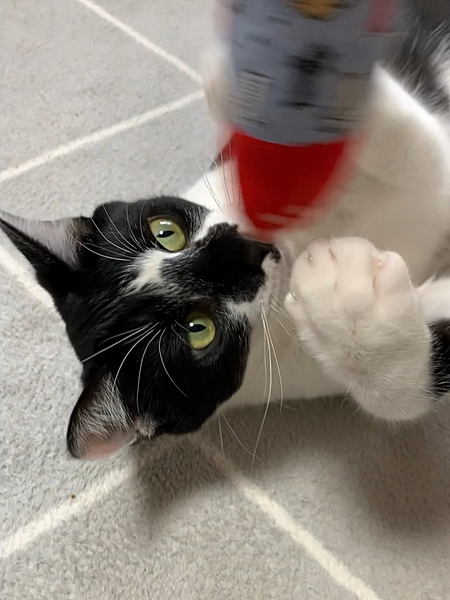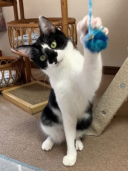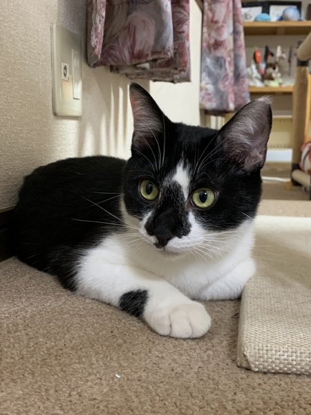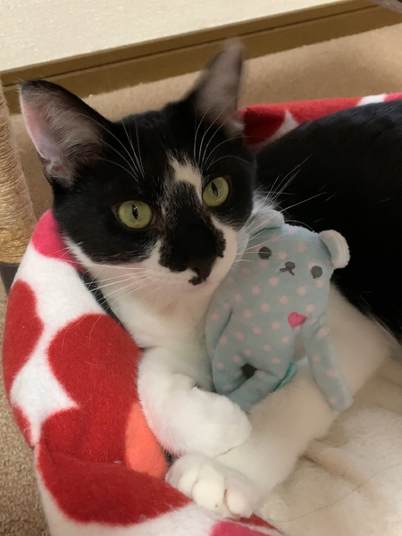 | 特徴(性格など) | ハチワレの男の子 お鼻の模様がコアラに似ているので 仮名「コアラ」君 男の子で身体は大きいが、スリスリ大好きで甘えん坊さんです。 |