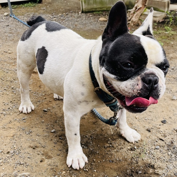 | 特徴(性格など) | 白と黒の牛柄です。 散歩をいっぱいしていたので マッチョです 人懐っこい子で誰とでもすぐに仲良くなれます。 |