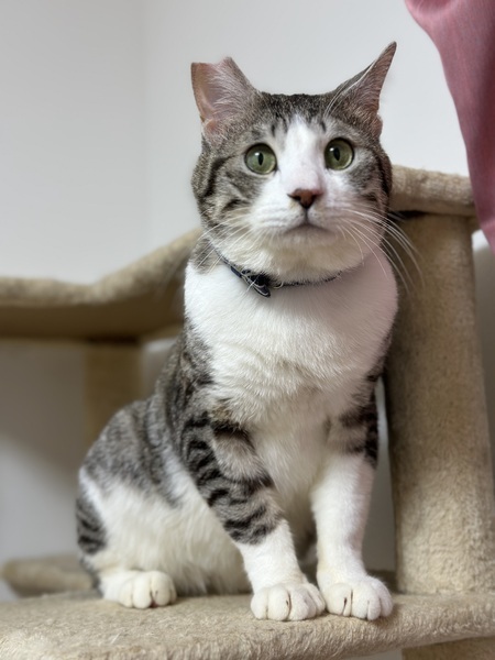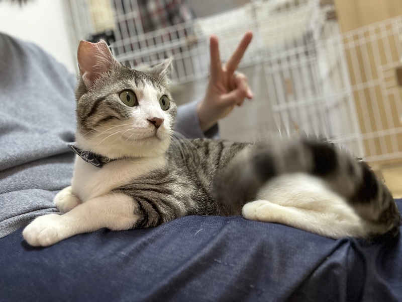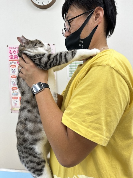| 特徴(性格など) | 超甘えん坊で人懐っこい男の子です。 5月の誕生石のようなキレイな緑色の瞳をしています。 換毛期で毛が生え代わり、茶色い部分も増えてきました。 お腹の真ん中にブチがある珍しい子です。 体重5.2キロ→8キロ!とってもムチムチして重たくなりました。 マジで重たいです。。。 トイレ◎、爪とぎ〇 (もしかしたらソファや布団、マットレスといった布地が好きなので爪とぎするかもしれません) 甘噛みの癖が直りません。よく噛んできますが本気ではないのでケガもしないです。 膝の上大好きで、夜は一緒に布団で寝てくれます。 キャリーに入れるのもさほど苦労しないし病院でもおとなしいです。 食物アレルギーもありません。どんなご飯でも食べます。大喰らいです。 前足で水を引っかいてから飲むクセがあります。 2L以上の給水器があると便利です。 普通の器で出すと全部ひっくり返していくので掃除が大変です。 猫が苦手です。多頭飼育には向いていない子です。 去勢手術後、特に問題なく過ごしておりましたが くしゃみ、鼻水が見られたため里親募集を中断、治療を済ませました。 ただくしゃみが続いたのでPCR検査をしたところ、どうやらアレルギー性のもののようでうまく付き合っていく必要があるとのことです。(おそらく空気中の物質っぽく、食べ物アレルギーではないです) 特にどうすることもできないので経過を見ながら、酷くなってきたらアレルギーのお薬を1週間飲む、といった具合です。 お薬も粉薬、カルカン等のパウチに混ぜてしまえば問題ないので投薬も面倒ではありません。 詳しいことはご応募いただいた際に質問くださればお答えします。 口内環境も良好とのことです。(口臭も気になりません) 2023年1月30日に去勢手術済んでおります。耳カット済み。 3種ワクチン接種済み。 猫エイズ、猫白血病(FIV,FeLV)どちらも陰性です! 面会時に治療明細はお見せします &譲渡時に治療明細はお渡しします。 |