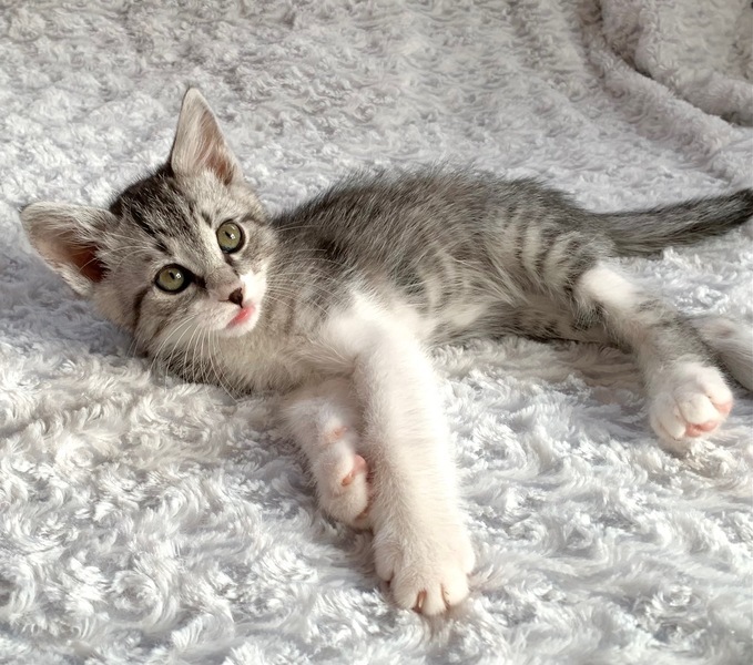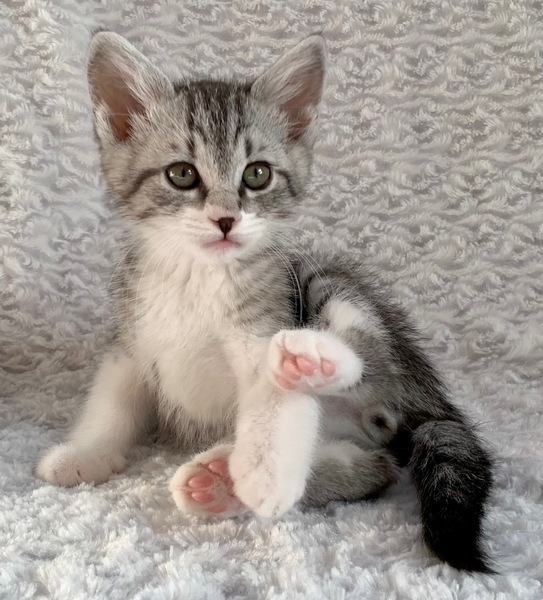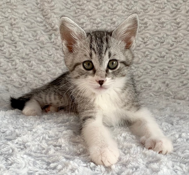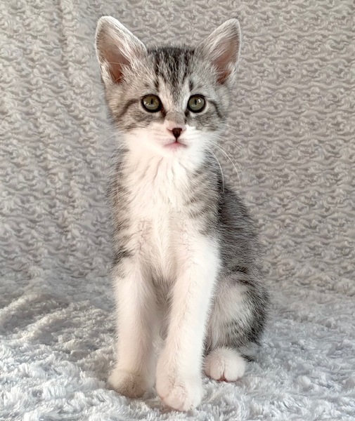 | 特徴(性格など) | 【仮名】幸村くん 【性格】もうとにかくメッチャ可愛い幸村くん♪ グレーにハッキリとしたキジトラ模様で凛とした表情は まさに浮世の名武将にふさわしいたたずまいです♪ 兄妹の中ではわりとポンヤリ系でトロイところも可愛いですよ♪ 元気いっぱい!よく食べよく遊びよく寝てスクスクと成長中です♪ ※保護時350g→現在700g(^^) 兄妹との遊びの中で色々と学習中なので 兄妹ペアでお迎えをお願い致します♪ ※1ピキ譲渡不可 |