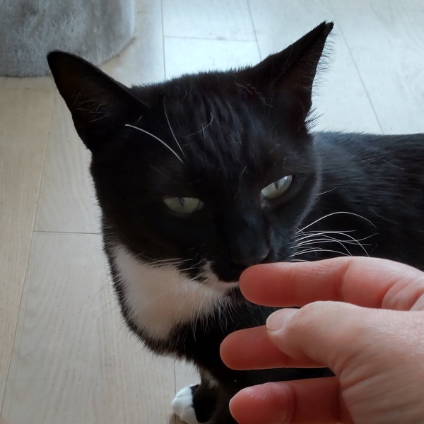 | 特徴(性格など) | 仮名:あずき 毛色:黒白 瞳の色:薄いブルーグリーン 尻尾:短めの曲がり尻尾 性格・特徴:短めの白ソックスにカーディガンを羽織ったような個性的な柄のあずきちゃん。 アーモンド型のとても猫らしいお目目は白に近いくらいの薄いブルーグリーンで、とても珍しい魅力的な色だと思います。 当方に来てから長いことひっかきが出ていましたが、3カ月経った頃から近くに寄ってきて触らせてくれるようになり、それでもまだうまく甘えられずに、時々やさしいパンチを繰り出していました。 4カ月経ってやっとパンチがなくなり、自分からスリスリしてくれるようになりましたが、まだこちらから近寄っていくと逃げてしまいます。 本当は甘えたい気持ちが伝わってくるので、時間をかけてゆっくり信頼関係を築いていけば、もっともっと仲良くなれると思います。 甘えたい時にはとてもかわいい小さな声で短く鳴きます。 他の猫に対しては、誰とでもケンカをせずにきちんとあいさつをしていますが、同じ埼玉の家から来たもっち、信玄、ふうやと特に仲が良く、団子になって寝ているので、この中の子と2匹での譲渡を希望します。 食欲旺盛ですが、ごはんの時には年上の子や古株の子が先に食べるのを待って、後からしっかりと食べます。 猫の世界ではとてもコミュニケーション能力が高いのだと思います。 システムトイレも固まる砂のトイレも失敗なく使っています。 左耳に桜カットあり。 健康状態:猫白血病、猫免疫不全ウイルスともに陰性。 ノミ・ダニ・お腹の虫の駆除済み。 快食快便の健康優良児です。 |