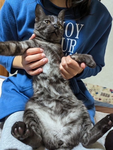 | 特徴(性格など) | ブラックスモーク つやつやの毛が綺麗です! 性格は慣れてきたのか少し寂しがり屋さんです! |