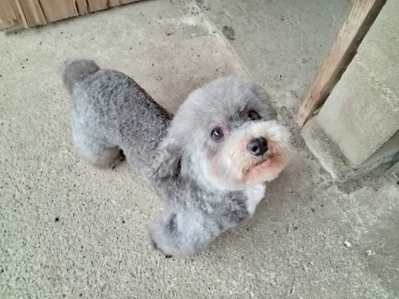 | 特徴(性格など) | 珍しいブルーだと思います。 口元、足先、胸に白いミスカラーがありますが、健康に問題はありません。 とても人懐こく人間大好き、明るい性格の子です。 4キロちょっと、やや大きめです。 室内トイレや散歩は練習が必要です。 全く吠えません。 留守番中や就寝中はケージ内で大人しくしています。 他の子とも仲良くできます。 トリミングは若干苦手な感じです。 |