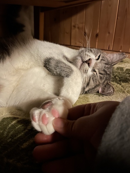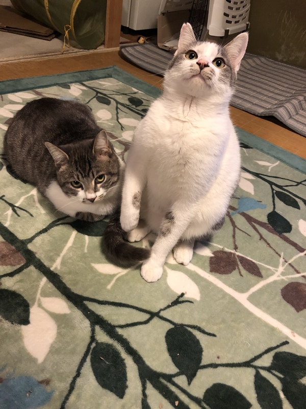 | 特徴(性格など) | ハチワレ(白と黒ぶち)(兄): 1歳2〜3ヶ月くらい ♡少し臆病ですが、ゆっくり近づいてきてくれます。人と遊ぶことが大好きなようです。 サバ白(弟): 1歳 ❤︎人が大好きで人懐こく、爪切りにも慣れています。 鳴き声が高くて可愛いく、かなり愛嬌があります。 どちらも母猫は同じですが、産まれた時期が少し違うようです。兄弟仲がとても良いです♪ |