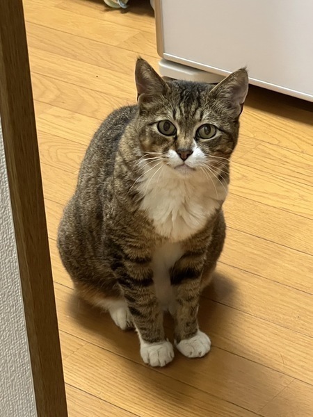 | 特徴(性格など) | 性格は、とても賢く、慎重派です。 そして、いつも、ちょっと小首を傾げてじーっと様子を伺う姿がとてもキュートです。 外でずっと一緒に寄り添って生きて来たチャイロと一緒だと、安心して新しい環境にも、人にも慣れやすいと思います。 外猫時代は、常に仲間たちを静かに見守り、怪我をしている仔や食欲が無い仔、元気の無い仔に寄り添っていました。 チャイロ以外の仔の側にカイ君が寄り添っていると、「ん?この仔、調子悪いかな?」と、目安になるくらいでした。 ご飯の時も、すぐには食べず、先ずは他の仔達が食べているのを見守り、遅れて食べ始めたり、他の仔の食べ残しをキレイに平らげたりしていたのが印象的でした。 最近では、預かりさんへの信頼感が芽生え、警戒心も取れつつあるように感じます。チャイロと一緒に預かりさんの起床や餌を待つ姿は健気でキュン?とします。 又、預かりさんの日々の努力により、最近では若干ビビリ気味ながらも、ナデナデも出来る様になりました。 カイ君は、とても賢い仔なので、最初は警戒して遠巻きに観察しながら、信頼できる方なのかを日々確認している様に思います。気長に見守って頂けると有り難いです。 相棒のチャイロ情報はコチラ→https://satoya-boshu.net/foster/detail.php?@DB_ID@=337886 |