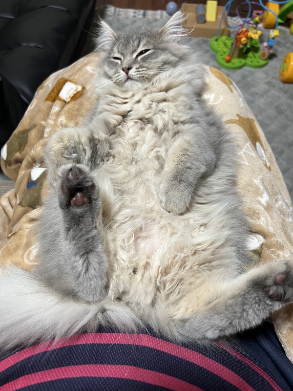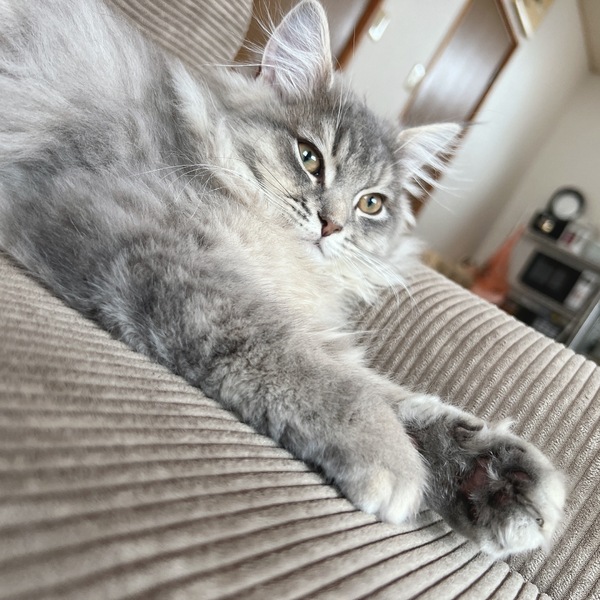 | 特徴(性格など) | やんちゃボーイのサイベリアンです。 色はブルータビーです。 目が合ったり、話しかけたりするとニャアとお話してくれます。 5月に3回目のワクチン、去勢手術予定です。 |