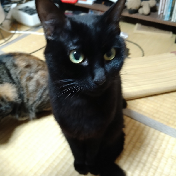 | 特徴(性格など) | ツヤツヤの黒猫です。遊ぶのも大好きですが、穏やかな性格をしています。食う寝る遊ぶに忙しそうです。 | ||