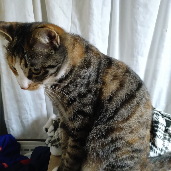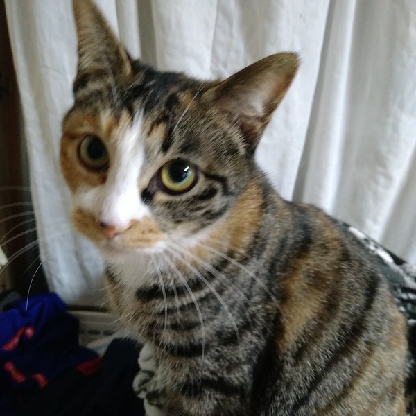 | 特徴(性格など) | たまに澄ました顔をするハチワレです。柄はキジ三毛で、毎日きょうだいと仲良く遊んでいます。 | ||