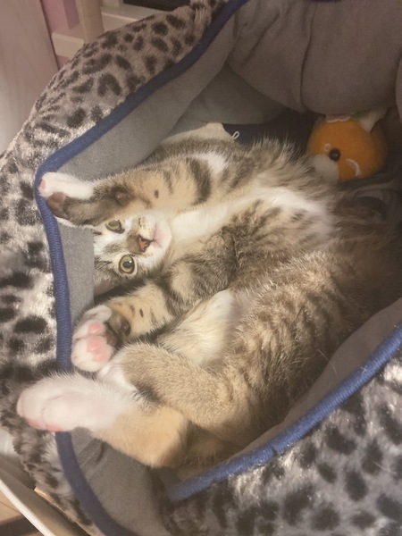 | 特徴(性格など) | 仮名・ノベル 兄弟姉妹から一足遅れて保護したため現在も人馴れ練習中ですが、 慣れている人とは同じベッドで寝られるようにはなりました。 仔猫らしく、遊んでもらうのは大好きです。 ぬいぐるみも好きです♡ 寒波で過酷な環境の中、懸命に生きてくれていました。 ゆっくり時間をかけてノベルちゃんの家族になってくださるお家を待っています。 健康状態 食欲もあり良好です。 体重 1.5kg(4/8現在) 今後の医療措置 ワクチン接種 避妊手術 マイクロチップ装着 |