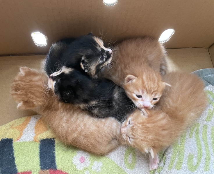 | 特徴(性格など) | 茶トラちゃん3匹、黒サビちゃん2匹の子猫ちゃんです。 | ||