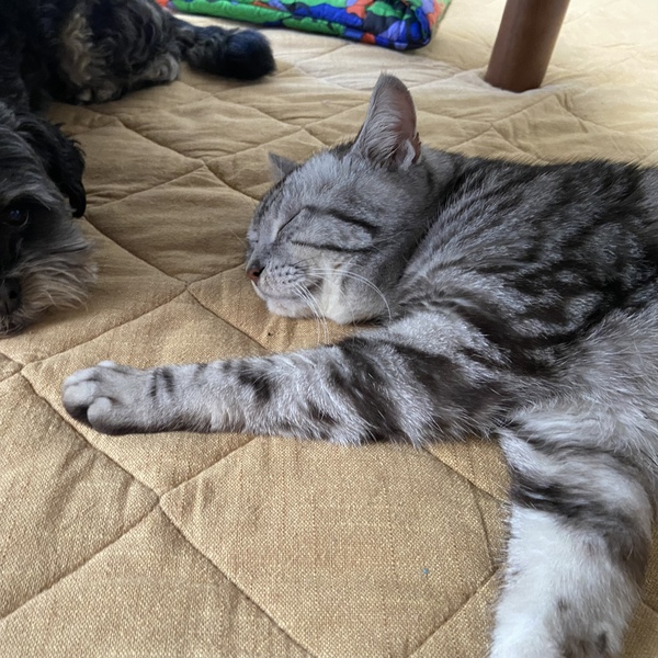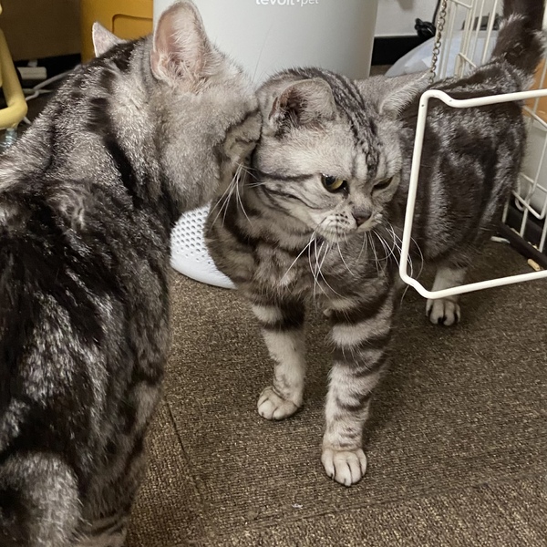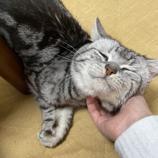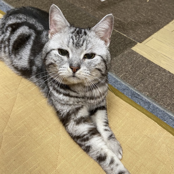 | 特徴(性格など) | とにかく性格が良く、甘えん坊でまったりした性格のサイロ君です。 ゆっくりと歩きながら行動し、人間のそばに優しくいてくれます。 どこを撫でられても怒らず、静かで優しい癒しの時間をくれるサイロ。 どんな人間も、さらにはどんな猫も犬も大好きです。 初対面の人間、他の動物にも物おじせず、優しく挨拶に回ってくれるご機嫌な男の子です。 ゴロゴロと喉を鳴らしながら、足をふみふみすぐにしちゃいます。 遊びも大好きで、ごはんやちゅーるも大好きです。 粗相もなく、本当に手がかからないサイロですよ。 一緒に頑張ってきたミール(同じくアメショの女の子)とは、基本離れて生活しますがたまにミールを優しくグルーミングしたり、匂いを嗅ぎ合ったり鼻キスで挨拶をします。 一緒にゆっくりと探検をしたりもしますよ。この2匹はあまりバタバタと走り回らずゆっくりさんで、本当に癒されます。 見た目は優しいトロンとした目に大きなお顔!そして綺麗な背中の模様とギザギザした尻尾でなんだかポケモンのようです。 寂しがり屋の甘えたさんなので、お留守番が少なく、できたらミールと一緒のお家に行けたらなあ、と思っております。 |