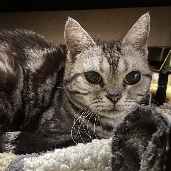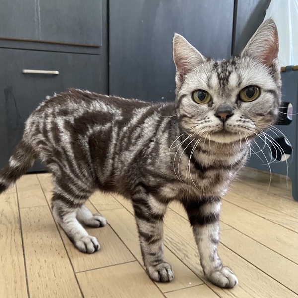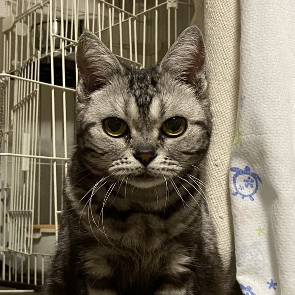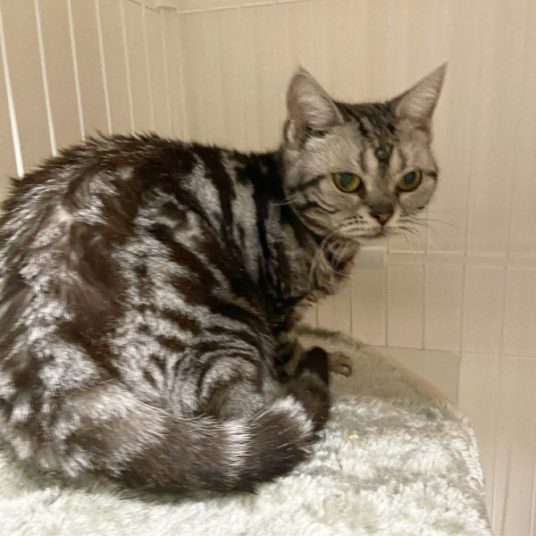 | 特徴(性格など) | 個性的でマイペースな性格が可愛い、ミールです。 ゆっくりと歩きながら、何かを熱心に考えながら行動する様が可愛いんです。 普段は静かな生活を好んでいるように見受けられますが、自分の世界を持っておりお気に入りの場所を見つけそこでマイペースに過ごします。 かと思いきやお部屋を探検したり、犬に挨拶したりと優しく気ままです。 最近は人間やおもちゃに興味を持ってくれるようになり、まだまだ良い意味で成長過程な感じがします。 お気に入りの場所にいるときになでなですると、気持ちいいのか顎に力を入れて甘えてくれますよ。 また鼻の前に指1本を出すと、そこに自分の頬を押し付けて気持ち良さそうにします。 当初は心を閉ざしていましたが、今は少しずつ、心を開いて楽しそうに暮らしています。 特に一緒のところにいたサイロと再会して以来、本猫の中に明るさが戻りました。 粗相もなく手がかからないですが、ウールサッキングの傾向が見られるのでそこは注意です。 またなぜかビニール袋に顔を擦り付けるのが気持ちいい時があるみたいです。 見た目は平べったいお顔に綺麗な透き通るお目目、そしてなんといってもグルングルンのお髭がたまらないほど可愛いです。 不思議の国のアリスのチシャ猫に似ています(特に本の挿絵の方の)。 ゆっくりと、穏やかな癒しの時間を過ごしたい方にぴったりの優しい猫です。 先住犬猫がいても本猫は気にしないタイプです。 小さなお子さんは難しいかもしれません。 |