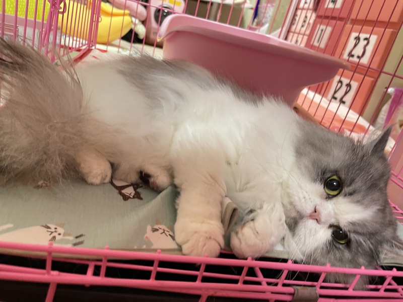 | 特徴(性格など) | ペルシャの女の子。色柄はチンチラシルバー。 とても甘えんぼうで人間好きな性格の良い子です。 トイレも完璧でいたずらもしないお利口さん。 性格はおっとりマイペースです。 |