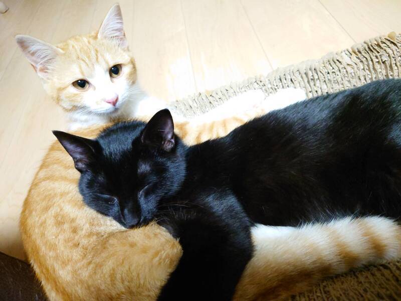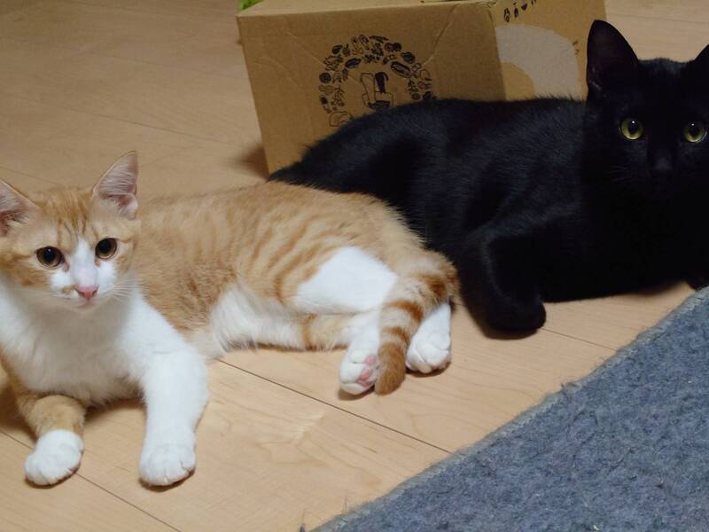 | 特徴(性格など) | オス*黒 甘えん坊・遊ぶの大好き・食べるの大好き・猫大好き メス*茶トラ白 甘えん坊・遊ぶの大好き・猫大好き ※家に入れてすぐは、緊張と不安で粗相をしました。現在はトイレでちゃんと出来ています。 |