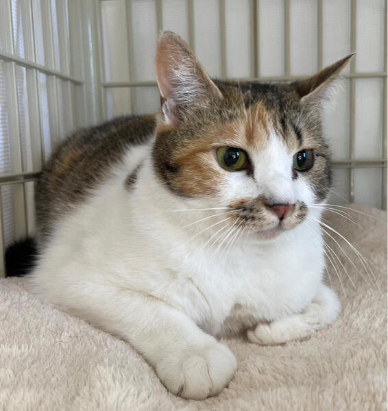 | 特徴(性格など) | アタチは、あいのちゃんって呼ばれてます。 幸せになれると信じて、熊本からお空を飛んで東京にやってきました アタチ、お転婆娘でヤキモチ焼きにゃのよ 好奇心旺盛だから、台所泥棒とかしちゃうから要注意よ! でも、かわいいから許してね!₍ᐞ•༝•ᐞ₎◞ ̑̑ ======================== 【性格】とってもかわいいキジ三毛の美猫ちゃんのご紹介です。 仮名あいのちゃんは、熊本市のセンターに収容されていた子です。 仮名はあいのちゃんと熊本市のセンターで名付けられておりました。 そんなあちゃんを東京に連れてきた経緯は、熊本市のセンターにて殺処分対象となっていたからです。 こんなかわいい子達の命を奪ってはならない!とそう思い、当会(NPO法人府中猫の会)で、57匹の猫達を空輸し、東京に連れて来ました。 その様子を宜しければYouTubeにアップしておりますのでご覧くだされば幸いです。 あいのちゃんは熊本市の40匹以上いた多頭崩壊現場からレスキューされた子で第4便隊としてやって来ました。 連れて来た当初の様子はYouTubeはこちら(こちらの動画後編の12分30秒あたりにあいのちゃんが登場します)https://youtu.be/S6ypvM-okxI そして、最近のあいのちゃんの様子はこちらのYouTubeにアップされてますのでご覧ください。https://youtu.be/4W1Tk2z3da4 一度、環境に障慣れてしまえば、好奇心旺盛のお転婆娘に早変わり。 遊びが大好きで、オモチャでひとりで楽しそうに遊んでいます。 猫よりも人に依存するタイプなので、他の猫を構っていると割り込んできてヤキモチを焼きます。 多頭崩壊出身が故、今まで人の愛情をしらなかったあいのちゃんが目覚めた感情であり、これもひとつの成長だと思っております。 本来、お三毛様は1匹で可愛がって貰いたい子が多くいるように感じます。 以上の点から、他の猫ちゃんと競い合って生活するのには向いていない子なので、あいのちゃんを迎えたい方は1匹飼いでよろしくお願いします。 ケージ訓練もしてありますし、フリー生活をさせてもトイレの粗相もないです。 ただし、羽毛布団要注意!です。 羽毛布団にだけ一度粗相をした事があります。 それと、お台所泥棒さんもしちゃいます。 とにかく、人間の暮らしに興味津々といった好奇心旺盛な子であります。 以上、いい事も悪い事も全て素直に書かせていただきました。 それを踏まえて、あいのちゃんに興味を持ってくだされば嬉しいです。 お仕事をお持ちのご家庭でも、お留守番ができる子なので、問題なく迎えていただけます。 多頭崩壊現場で必死に生き抜いてきたあいのちゃんを迎えてくださるご家族との素敵なご縁をお待ちしております。 よろしくお願い申し上げます。 |