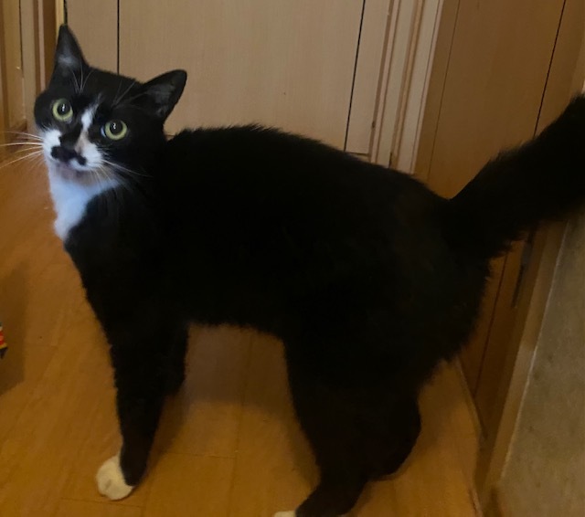 | 特徴(性格など) | 黒白でしっぽが長く可愛い子です。 ひとなつこくて甘えん坊な性格です。 |