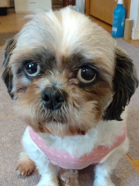 | 特徴(性格など) | ■特徴(仮の名前:そら豆) シーズー ♂ 推定5~7歳 体重5.8kg ■性格・暮らし ・穏やかで人が大好き、甘えん坊です。 ・身体のどこを触っても大丈夫です。 ・トイレは室内でも外でもできます。 ・お散歩大好きで引きが少し強いです。 ・心雑音があり、半年に一度程度の検診をお願いします。 ■今までに行った医療行為 ・血液検査 ・フィラリア抗原検査(-) ・耳ダニ(-) ・混合ワクチン接種 ・去勢手術 ・歯石除去 ・検便 ・マイクロチップ装着 ・心臓検査 ・耳の後ろの腫瘍切除 ■今後行う医療行為 なし |