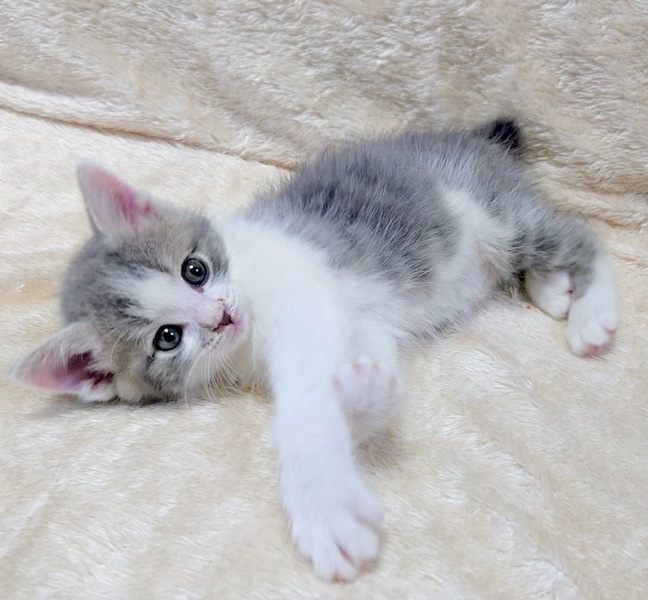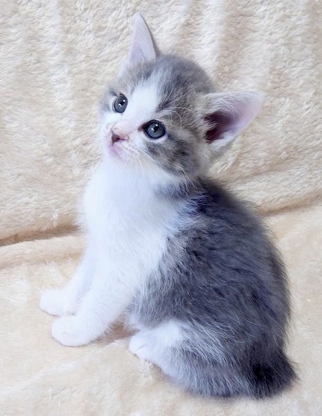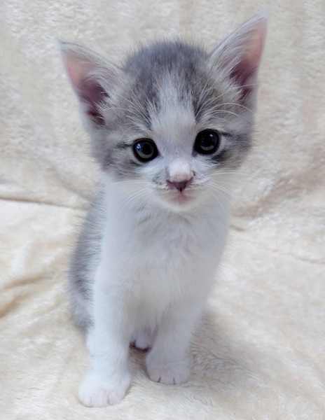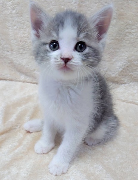 | 特徴(性格など) | 【仮名】ゆずくん 【性格】もはやプリンス感しかないゆずくん♪ グレーシロのフワフワ毛並みで王子様の風格を感じます♪ 兄妹みんな180gから人の手で愛情いっぱいに育てられたので ノラ魂なぞ皆無です♪ 兄妹の中ではちょいビビリですがアザとく甘えてこられると 思わす守りたくなっちゃいます♪ 元気いっぱい!よく食べよく遊びよく寝てスクスクと成長中です♪ ※保護時180g→現在700g(^^) 遊びの中で色々と学習中なのでももちゃんとペアでのみお願い致します♪ ※1ピキ譲渡不可 |