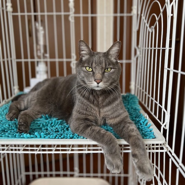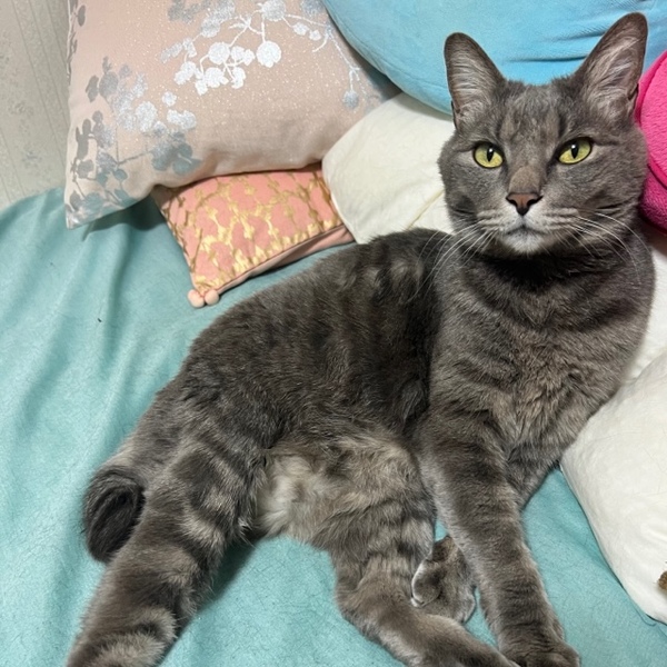 | 特徴(性格など) | 大きな身体で勇ましい顔つきですが、いつも人の顔を見ればゴロゴロと喉を鳴らす猫さんです。鳴き声もその風格からはイメージ出来ない可愛らしさがあります。 外にいた時から人の気配がすると寄って来て撫でさせてくれるなど、これは明らかに飼い猫さんだったんだなぁ〜という感じで逃げることなくあっさり保護。 保護初日から警戒することなくのんびり寝始めたので、新しい里親さんの元へ行ってもずっと居たのかしら?と思うくらいに馴染めると思います。 おっとりな性格なので一見先住猫さんと仲良くなれそうですが、猫よりも人が好きなタイプのようなので、1匹で可愛がってくれるおうちがスフィンくんにとって幸せになれるのではないかと考えています。 それから大きくなってからお外を知った猫さんなので、時々網戸などに手を掛けて外に出たいような仕草をします。 再びお外で大変な思いをしないよう脱走防止をしっかり対策してくださる方にお願いしたいと思います。 |