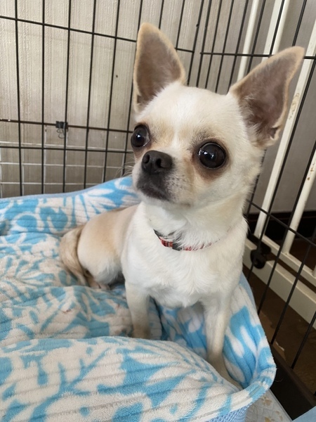 | 特徴(性格など) | ●犬種:スムースチワワ ●性別:メス ●カラー:クリーム&ホワイト ●年齢: 2016.6.19. ●現在の体重:2.96キロ ●性格:少しビビリな所もあります。強気も面も少しだけ。 ●ごはん:ドライフードに茹で野菜などをトッピング。 ●お散歩:これから練習します。 ●お留守番:ゲージの中で過ごしてます。 ●トイレ:ペットシートの認識、あります。 ●その他: 運動能力が高いので、お留守番の時は、天井がついたゲージにいます。 少しだけ控え目ですが、人懐っこいワンコです。運動能力が高いので、お留守番の時は、天井付きのゲージでのお留守番をお願いします。また、逃げ出せないような環境整備が必要性です。 |