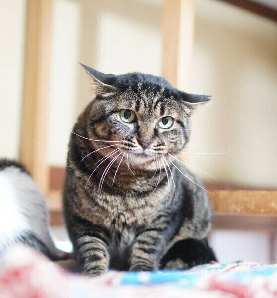 | 特徴(性格など) | ◆高石子ちゃん 人馴れ進行中のキジトラ女子 ○川崎市内の民家の庭で、子育てしていたところを保護しました。 ○推定4歳くらい(2025年4月時点)の濃い目のキジトラの女の子です。体重は4kg(2024年11月9日時点)です。 ○尻尾は鍵しっぽです。 ○びびりな子なので怖いとシャーしちゃうこともありますが、触るのはOKです。 ○ゆっくり距離を縮めてくれる里親さまをお待ちしています。 ★ワクチン済み、不妊手術済み。 ★猫エイズ、猫白血病ともに陰性。 ☆単身のかたはご相談ください。 ★★お見合いを設定することも可能です。まずはお申込みください★★ |