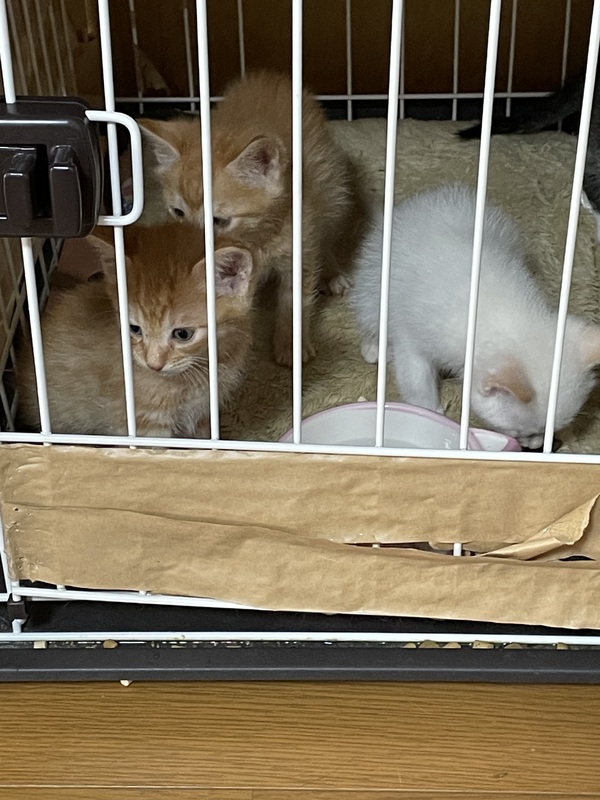 | 特徴(性格など) | 父猫スコテイッシュと母猫メインクーンのMIXです。 子猫なので走り回りますが、両親は比較的おとなしく、穏やかです。 茶トラ♂ 白黒♂ 黒♂ 白♀です。 |