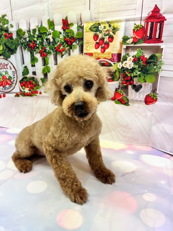 | 特徴(性格など) | レッドのトイプードル。 とても甘えん坊で気立の良い男の子です。 両方の耳が幼い時に齧られたそうで欠損しています。 基本的に他のワンちゃんとも仲良くできます。 ケージでお留守番もお利口さんにできます。 |