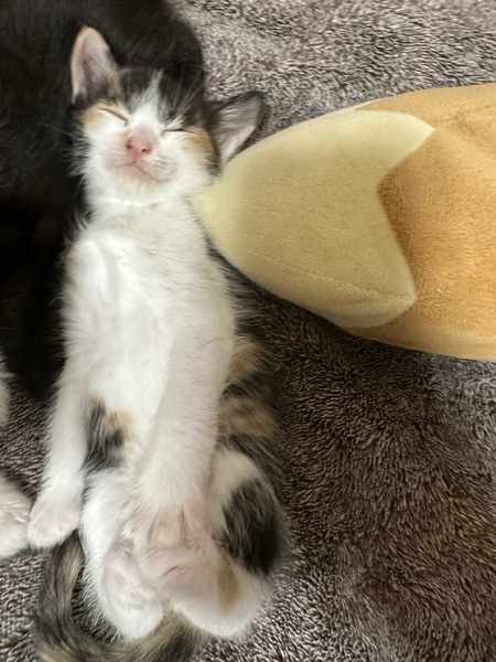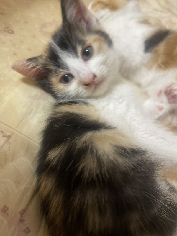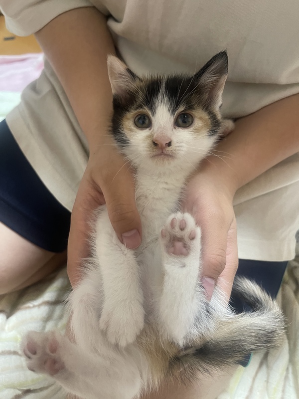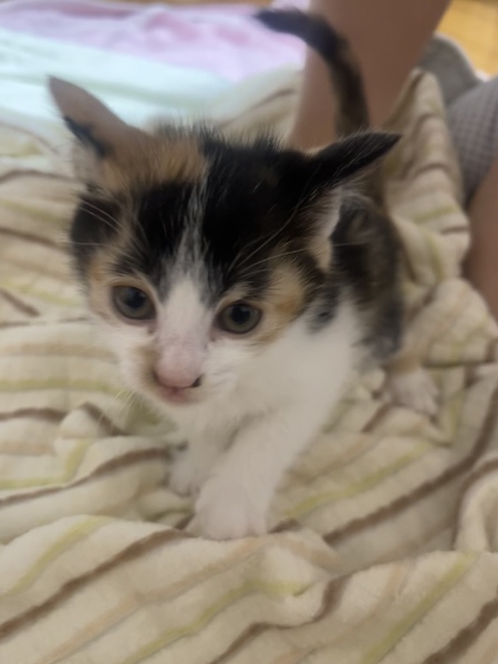 | 特徴(性格など) | 産まれて1ヶ月の三毛猫ちゃんです! 活発でかわいくて愛くるしいです(=^x^=) 額が武士のようで凛々しいですが、女の子です! |