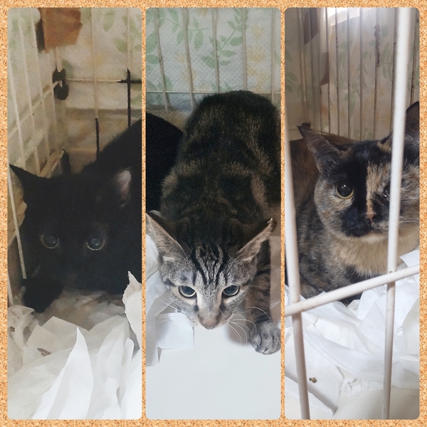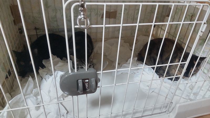 | 特徴(性格など) | 犬用平ケージに、姉妹3匹暮らしています。トイレも常設の水もありません? 2021年秋産まれ、ずっと狭いケージ暮らしです。 黒/キジ/サビちゃん (黒トライアル決定) 家主様には良く馴れているそうです。 他人の私には人見知りはしますが、怒ったりしないので、一緒に暮らせば仲良くなれるコたちだと思います。 |
