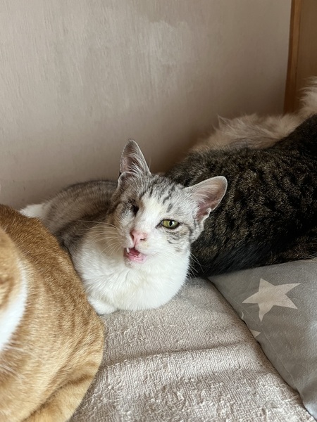 | 里親募集する理由 | 「目をケガしてる子がいるので助けて」と持ち込まれました。 | ||