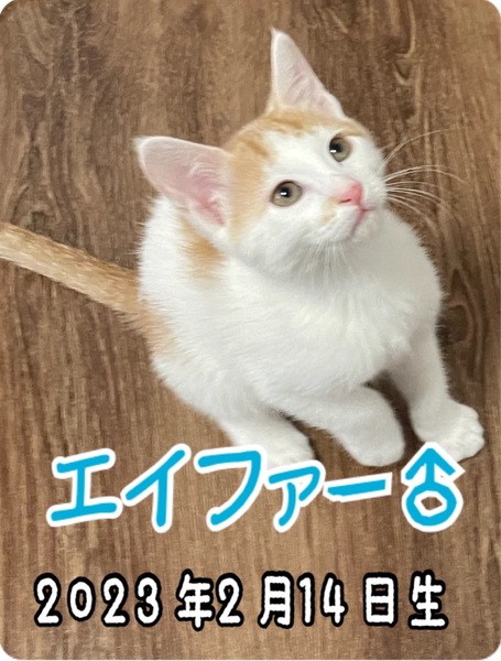 | 特徴(性格など) | 白茶 人慣れ⭕️ 元気いっぱいです。 ジェイ♂、マーズ♀と兄妹です。 優先順位→①3匹一緒に→②2匹一緒に→③1匹のみ |